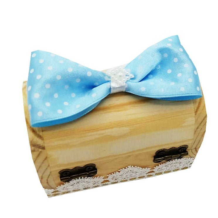 Păstrează cele mai frumoase amintiri din copilăria micuțului tău într-un cufăr din lemn natural, decorat cu panglică colorată. Ideal pentru prima șuviță de păr sau alte mici amintiri prețioase. Un cadou simbolic și de suflet pentru botez, aniversări sau ocazii speciale.