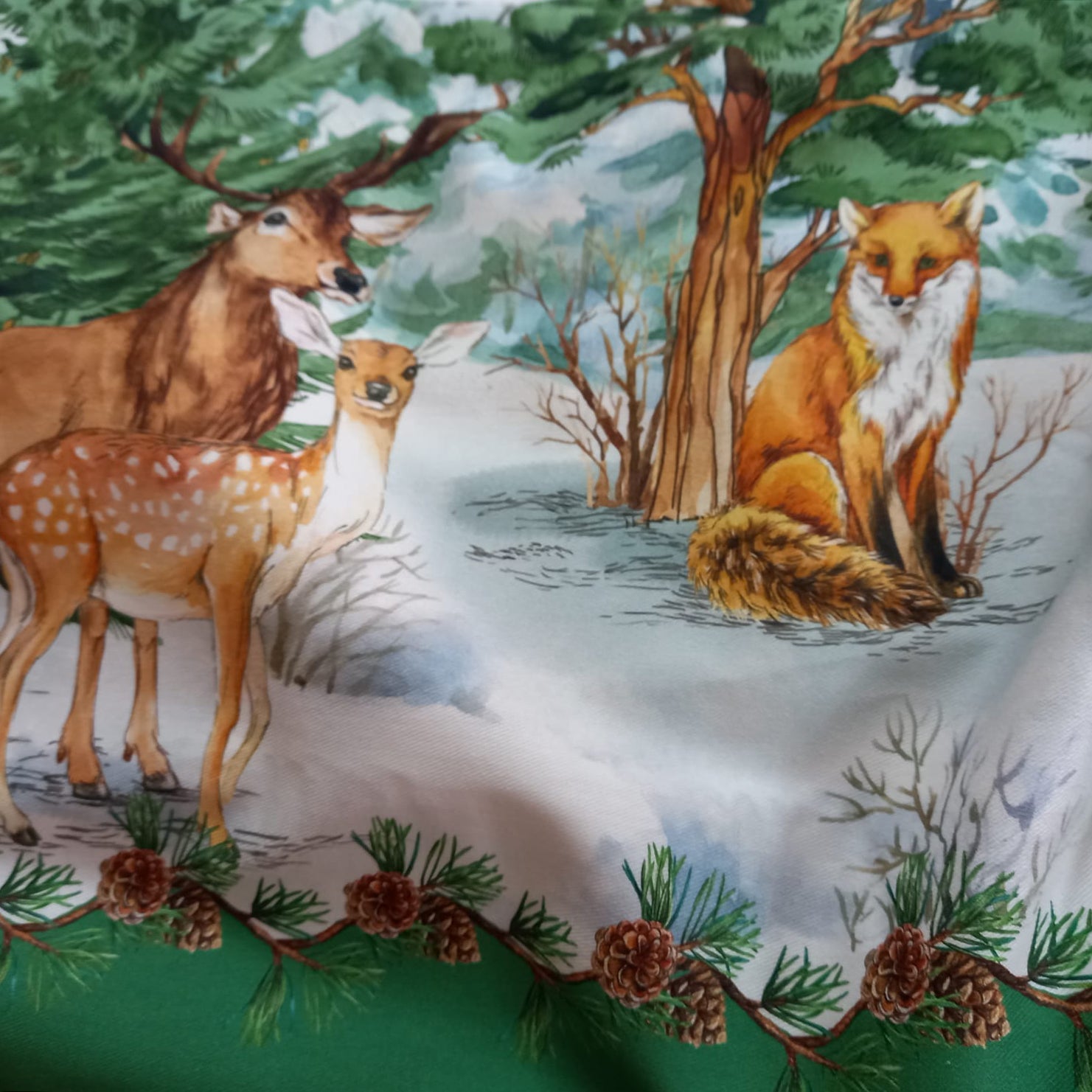 Față de masă „Animalele Pădurii” – bumbac de calitate, imprimeu tematic natură