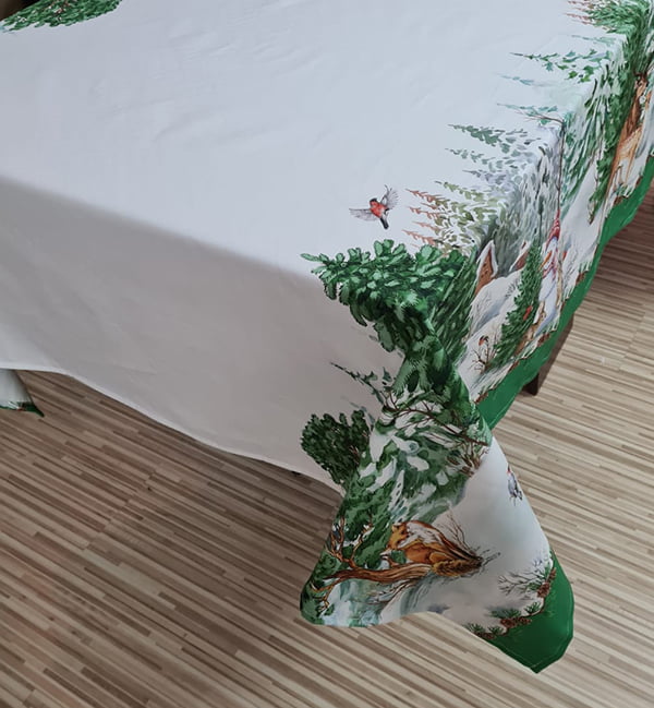 \n3. Versatilitate: Fata de masa cu caprioare poate fi folosita in diverse contexte, de la mesele zilnice la petreceri tematice sau sarbatori de iarna. Designul sau versatil se potriveste in diferite decoruri si atmosfere.