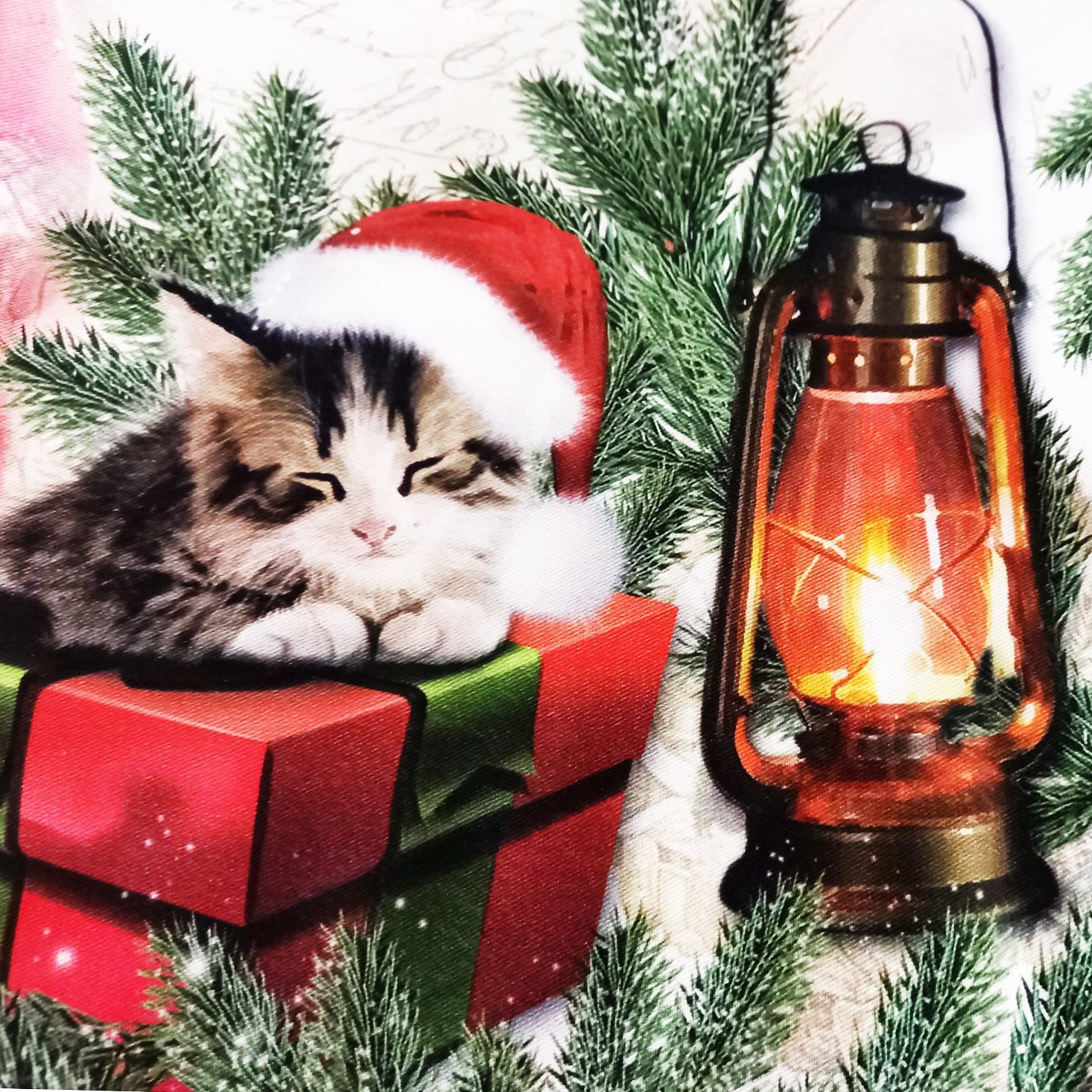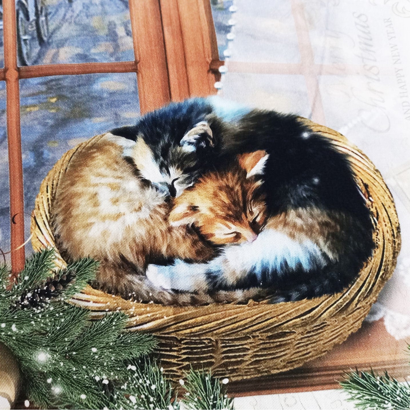 Față de masă din bumbac „Pisici Amuzante” – pentru 6 persoane, MCF, decor de Crăciun