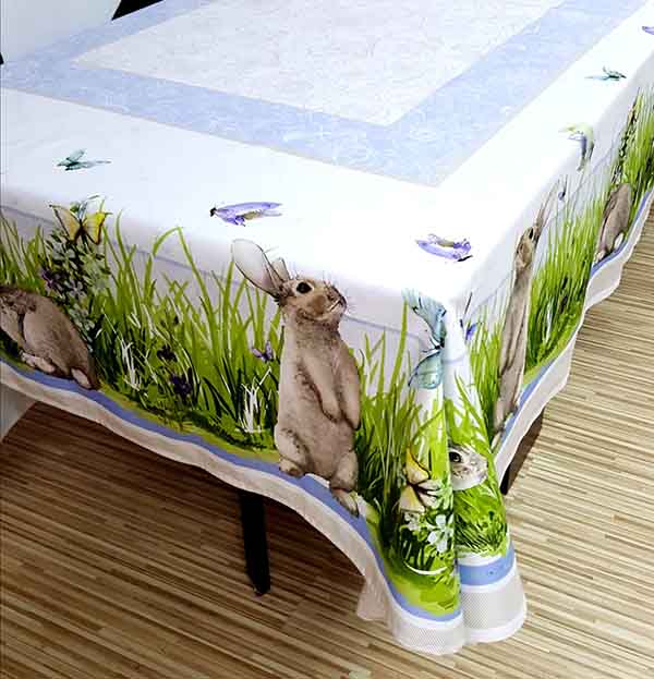 Fata de masa din bumbac cu Iepurasi Pasti 6 persoane