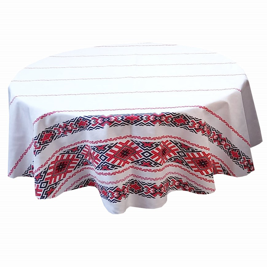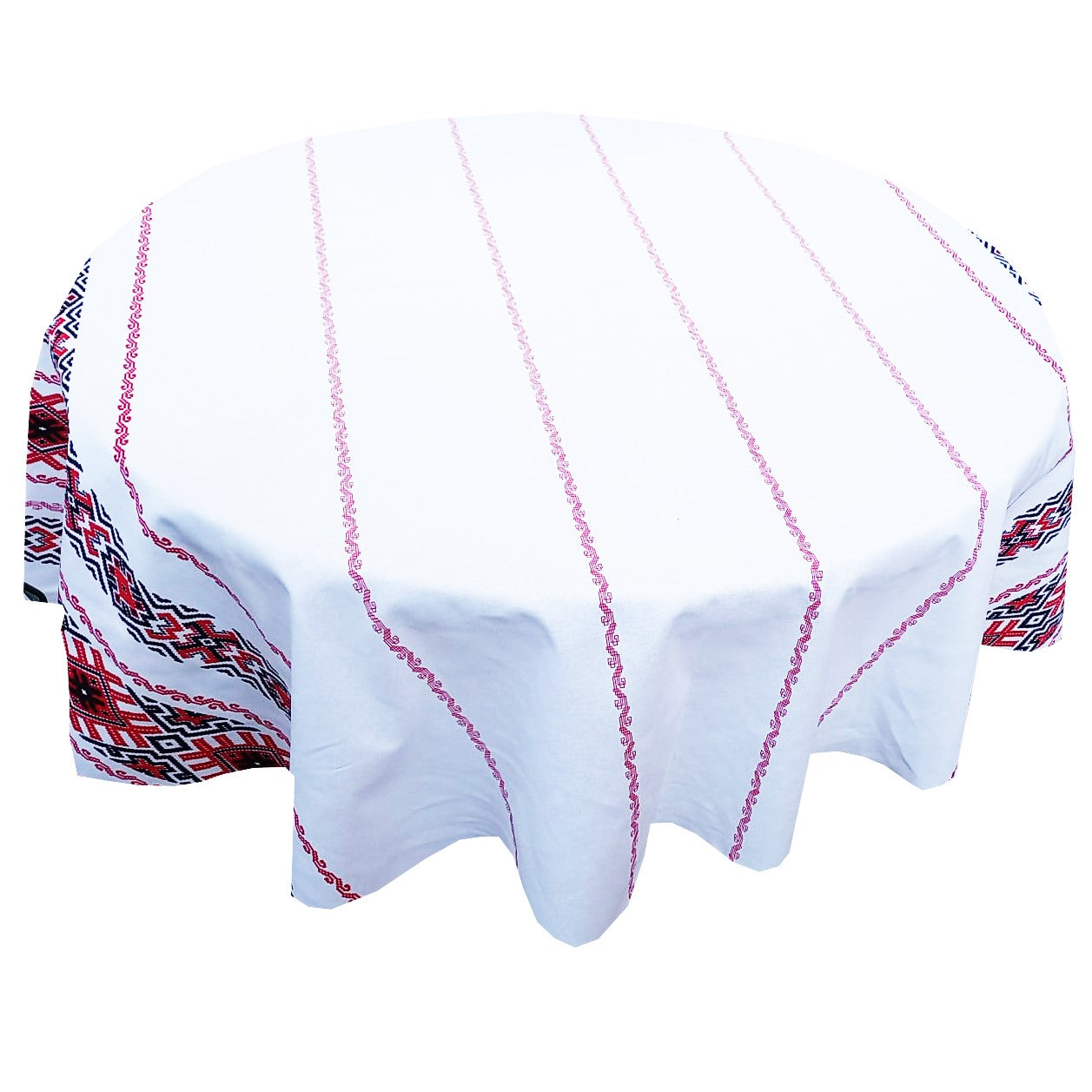 Față de masă rotundă tradițională Oltenia – bumbac 100%, model popular românesc