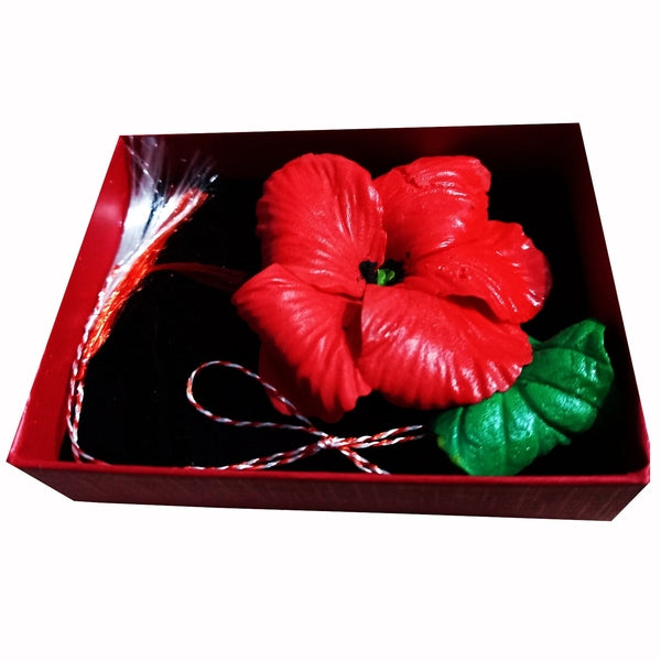 Mărțișor Broșă Mac Roșu din Lut Polimeric, Lucrat Manual în Cutie Cadou Elegantă