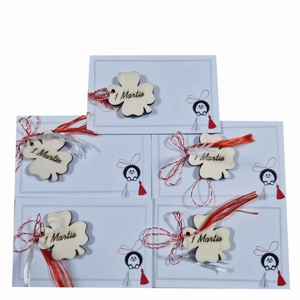 - Gata de Oferit: Include șnurul tradițional alb-roșu și este prezentat pe un suport din carton alb elegant, decorat cu un element grafic discret (arici vesel).
