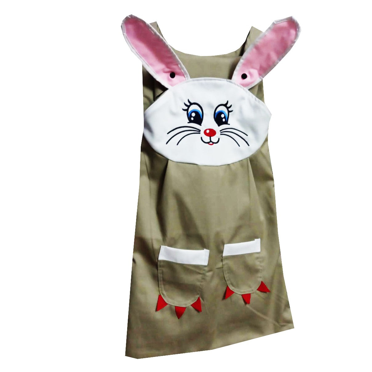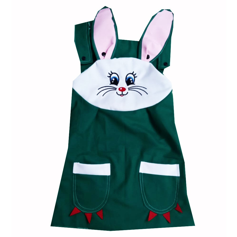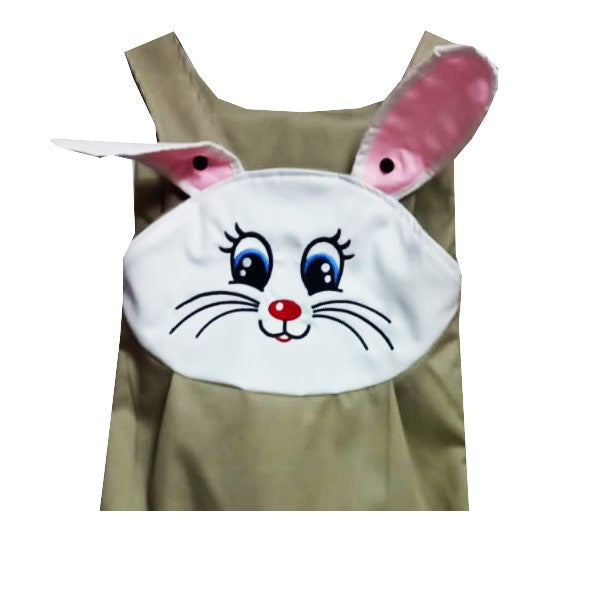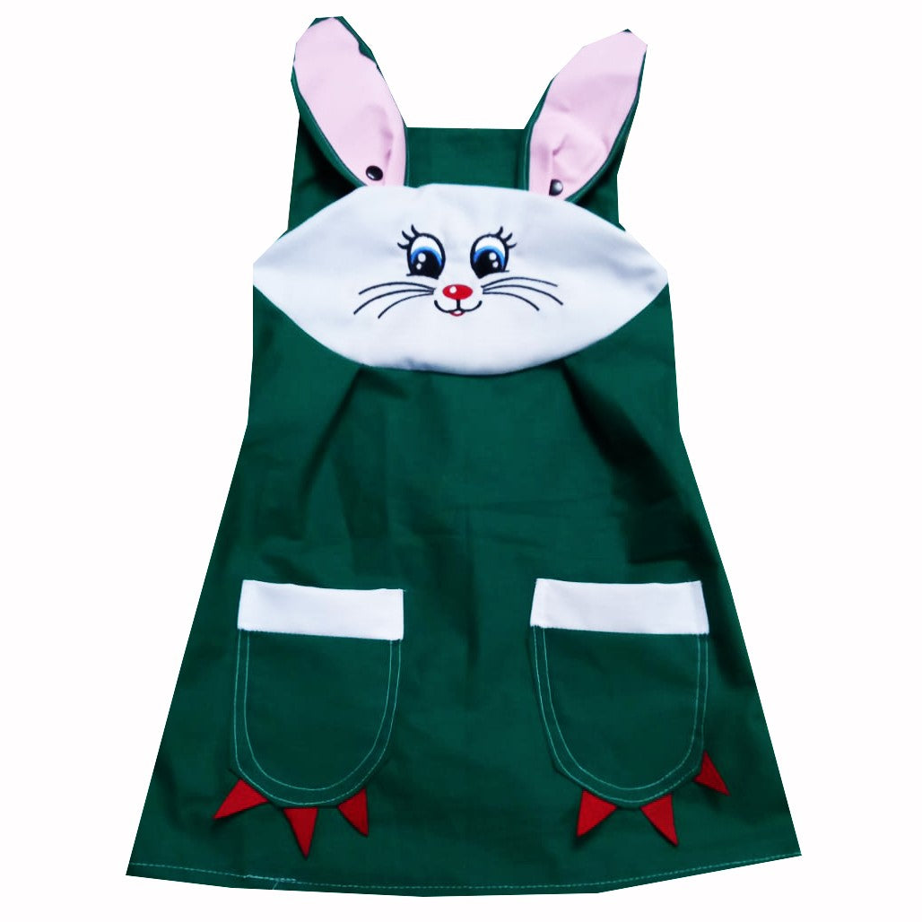 Sarafan vesel și confortabil pentru fetițe, cu imprimeu multicolor și aplicație cu iepuraș. Realizat din material plăcut la purtare, este ideal pentru grădiniță, joacă sau plimbări. Disponibil în două variante de culoare: bej și verde.
