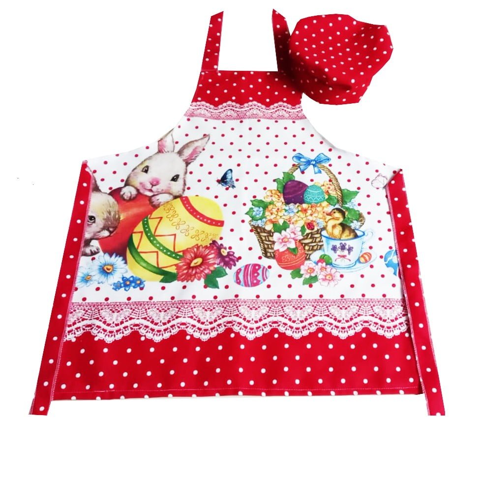 \nSetul vine cu un sort si o boneta cu un design tematic de iepurasi de Paste, care adauga o nota festiva si vesela oricarei activitati de gatit.